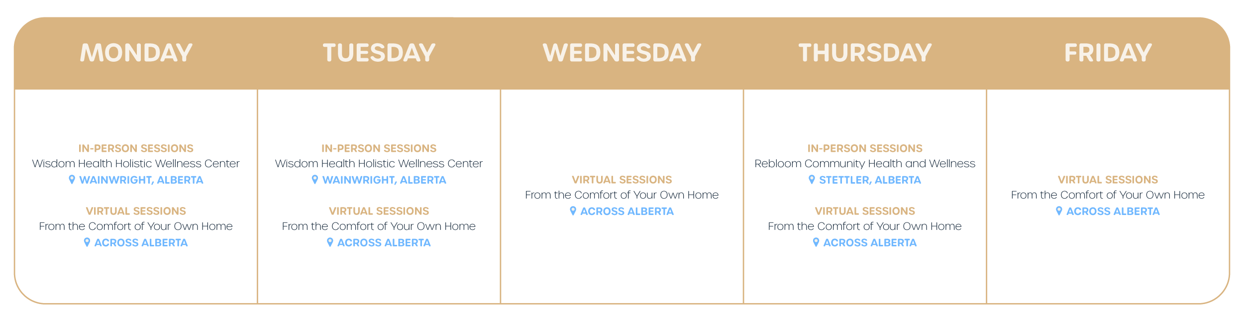 In-person sessions are located at Wisdom Holistic Health Center.